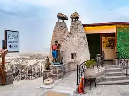 There are some sights to see on the way to Uchisar Castle, as well as many souvenir shops and delicious steak pizza places.