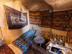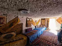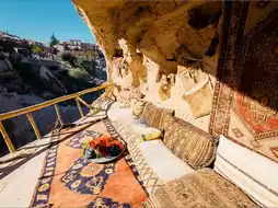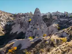 From the center of Uchisar, take the road to the Göreme Valley. There are no signs, but locals know the place as "cave café near the fairy chimneys."