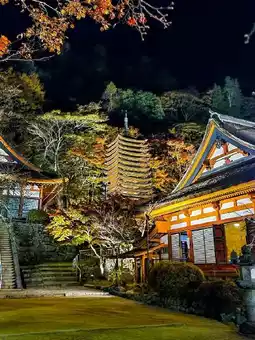 The highlight of the shrine is its unique 13-story wooden pagoda — a rare structure in Japan and a stunning centerpiece especially during autumn when the surrounding maples burst into brilliant reds and golds. The peaceful forested path leading up to the shrine creates a meditative atmosphere, and the elevated position offers panoramic views of the surrounding countryside.
