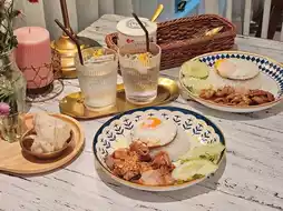 This shop is considered a secret shop in Udon Thani. It's located in an alley. Nook pinned it on Google Maps. The shop's decoration is so cute!!!🤍 When I got there, they served me desserts. I was so impressed.🥰 The food here is not expensive at all. It's delicious and you get a lot.🍛 If you're hungry, I recommend this shop.