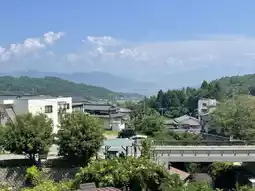 The fifth photo presents the open view around Besso Hot Springs, with clumps of mountains, intertwined city streets and fields, lush green in summer and snowy scenery in winter, each with its own charm.