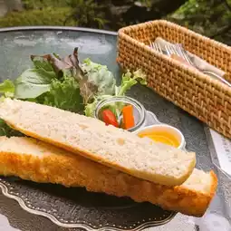Spicy chicken curry + Consola bread and fresh salad 1,400 yen + 300 yen for pudding