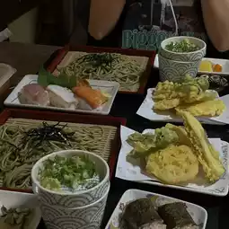 There are a variety of menus, including matcha soba, udon, sushi, and fried food