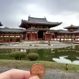Features: Japanese ten-yen stamp, a national treasure of the Pure Land Buddhism, and a phoenix statue representing the Japanese spirit