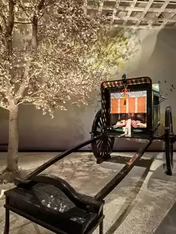 The theme of the Heian Hall is Heian-kyō and Hikaru Genji. The hall displays an elegant and splendid ox cart and costumes, and visitors can get a glimpse of the Heian period through lighting effects.