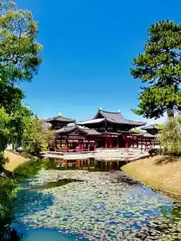 Nestled in Uji, Kyoto, the Byodo-in Phoenix Hall (平等院凤凰堂), built in 1052, is a stunning example of Japan's Heian period architecture. The bright vermilion hall resembles a phoenix poised to take flight, reflected in the serene waters below. It feels as though you’ve stepped back in time, into a pure land untouched by the centuries. 🌅