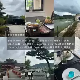 Uji ꜱᴛᴀʀʙᴜᴄᴋꜱ (30 minutes) ➡️ Byodo-in (1-2 hours) ➡️ Kyoto Duck ᴋɪᴛᴄʜᴇɴzen (1 hour) ➡️ᴀᴍᴀᴛɪꜱᴛᴀ ᴄᴏꜰꜰᴇᴇ Coffee Bean Specialist (15-30 minutes) ➡️ Ujibashi (15-30 minutes) ➡️ Yunshang Tea House (1 time)