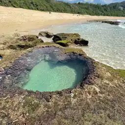 Apparently, fish swim in the heart-shaped tide pools, which only appear at low tide. Be sure to spot them! 😊