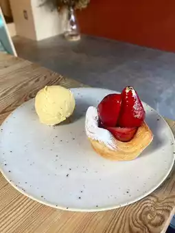︎︎︎︎☑︎Mille-feuille-style assiette dessert with three types of strawberries and white bean butter ice cream 1600 yen