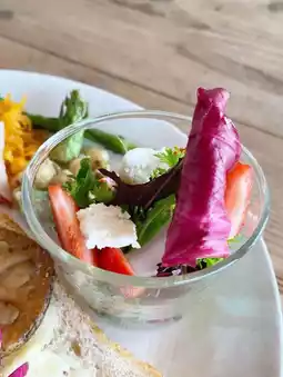 The soup with lots of vegetables and the salad with strawberries were really fresh and made a great lunch🥰