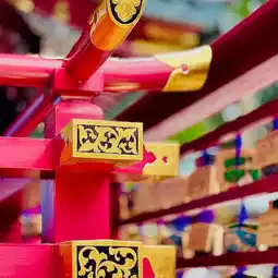 Being in the grounds of Ukiha Shrine is like being in a sacred place of peace and tranquility. The entire shrine follows pure Japanese architectural style, with vermilion gates, roof tiles, columns and other shapes, showing a sacred and solemn atmosphere. The courtyard is filled with lush green trees and the air is fresh and pleasant, giving people a sense of peace and tranquility.