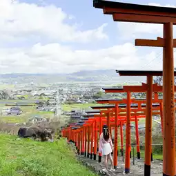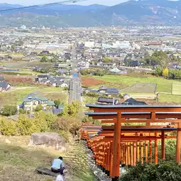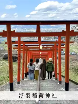 Fukuoka also has a very famous group of thousand torii gates, which has become a popular check-in spot in recent years. It is the 'Ukiha Inari Shrine' located in Ukiha City. From the highest point of the torii gates, you can look down and enjoy the panoramic view of Ukiha City against the backdrop of blue skies and white clouds. The air on the mountain is very fresh with no pollution at all. The most beautiful times to visit are during the autumn foliage season or the spring cherry blossom season. The shrine was founded in 1957, and the entire row of torii gates consists of about 300 stone steps, with a total of 91 torii gates standing on the mountain. The thousand torii gates stretch from the top of the mountain to the bottom, attracting many tourists who come to take photos. The torii gates extend all the way to the foot of the mountain, connecting to Route 52, seemingly linking nature with the city.