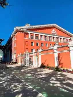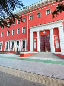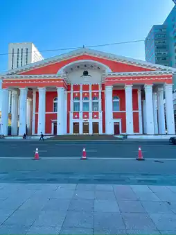 The National Drama Theater, which appears as the Barka International Bank, is a separate building from the red building near GFL Company, and is located a short walk south.
