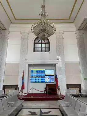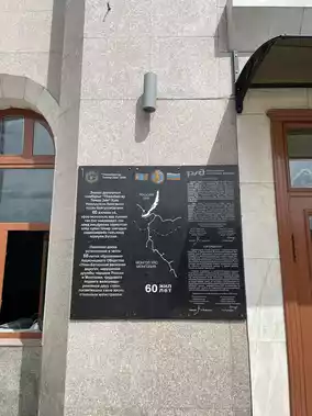 It features a heavy building that retains the architectural style of the Soviet era.