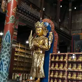 The highlight for me was the massive golden statue of Migjid Janraisig inside the main temple. It is stunning in both size and detail, and standing beneath it feels truly humbling. Around the monastery, colorful prayer flags flutter in the wind, and locals quietly make their rounds, offering prayers.