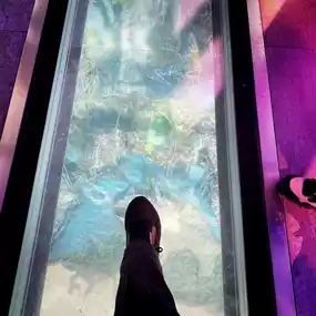 Exploring Ulaanbaatar's hot spot, Zaisan Hill, we stopped by the Roc Caffeine Bar and took a photo on the 7th floor glass bridge of the Zaisan Hill complex. #HotPlace