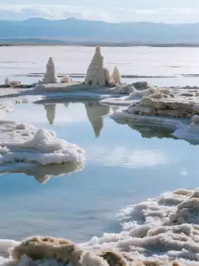 Third stop: Tianji Xinyue – rent shoe covers to wade in the water! (💰10 yuan) The salt lake can corrode shoes, so don’t be stingy! You can also try the salt lake ice cream~