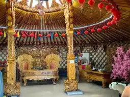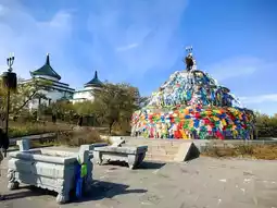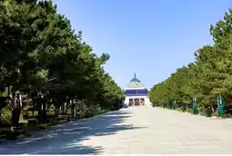 Genghis Khan Park is located on the top of Khan Mountain in the north of Ulanhot City. The Genghis Khan Temple is located in the park and is the only temple in the world that commemorates Genghis Khan. It is a key cultural relic protection unit in Inner Mongolia Autonomous Region. The temple was designed by artist Nailer and construction began in 1940. It was completed on October 10, 1944. The temple faces south and is shaped like the Chinese character for "mountain" (山) with a round top. The main hall is 28 meters high, and the east and west side halls are 16.62 meters high. The roofs are connected by circular corridors, each with three small spires covered with green glazed tiles. Genghis Khan Park is a comprehensive park that integrates historical protection, exhibition, and square landscape, and combines the architectural styles of the Mongolian, Han, and Tibetan ethnic groups.