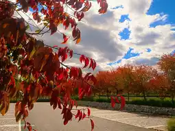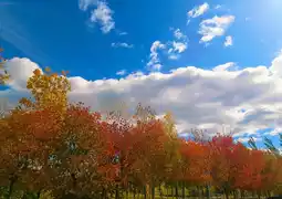 The red is from the maple forest, with leaves like small flames burning brightly, clustered on the branches. When the wind blows, the whole tree’s “flames” sway, and even the air seems to be warmed. The yellow comes from the ginkgo trees, their fan-shaped leaves carpeting the ground, rustling underfoot. Looking up, the golden canopy shines like a gilded edge framing the sky.