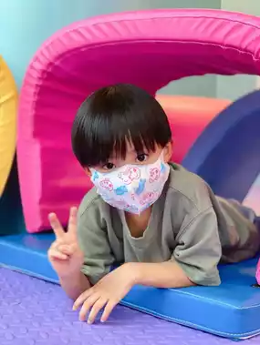 Every adult and child must take off their shoes and wear socks when entering the cushioned play area, in case you forget to wear socks can be purchased at the reception 😊