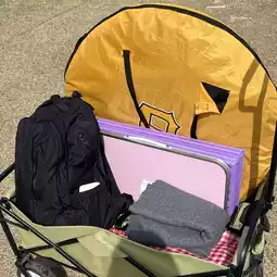 I rented a set of "One-touch tent/blanket/embossing mat/wagon/table/2 camping chairs" that will be a shade