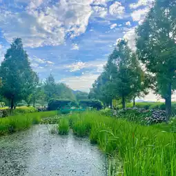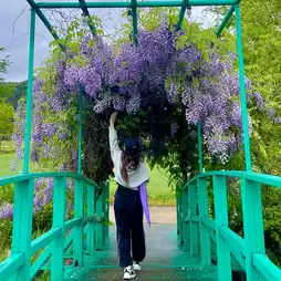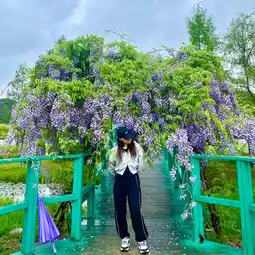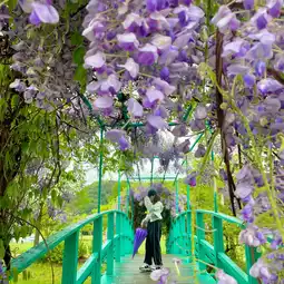 If you go towards the wooden deck, you'll see a bridge in the middle of the river called Monet's Bridge. In spring, wisteria flowers bloom here, making it incredibly beautiful!