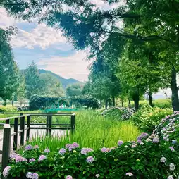 The exact location shown in the photo is straight ahead from Neutinamu-gil in the National Garden! The hydrangeas were beautiful, and the nearby grass and atmosphere were wonderful.