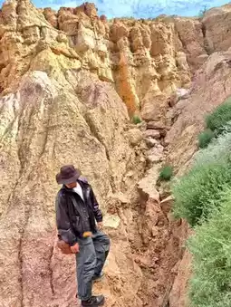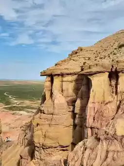 When I looked down from the cliff, an endless yellow-colored valley was spread out. I thought that the power of nature was truly amazing, as traces of the time when this place was the sea remained. The rugged appearance of the cliff contrasting with the vast grassland in the distance was impressive~!!