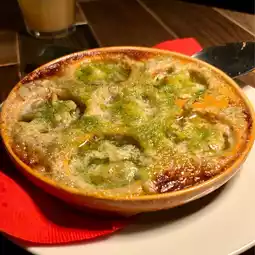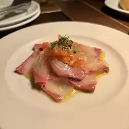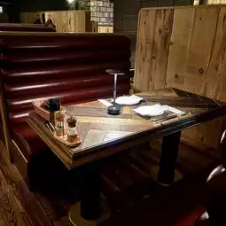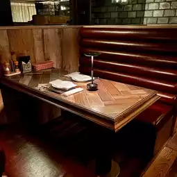 The interior is dark and luxurious, creating a sophisticated atmosphere. The tables are spacious, allowing for a leisurely meal. Located near the station, it's easily accessible, and the portions are generous, making it a great place for dinner with friends after work.