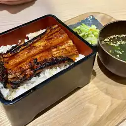 Choose from the lunch menu. On top of the barley rice is a thick, well-bodied grilled eel.