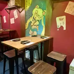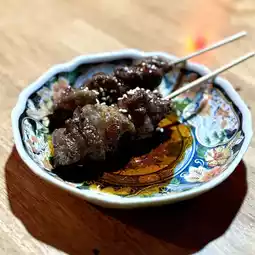 5 minutes walk from Umeda subway station. A back alley bar where you can enjoy charcoal grilled yakitori, beef, and pork in a retro Showa-era space.