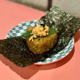 ・Grilled rice ball with shredded salmon flakes 385 yen