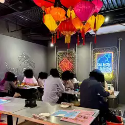 A wide variety of dishes using fresh salmon. The salmon noodles in particular were smooth and melt-in-your-mouth, and packed with flavor. There are also many creative dishes that make use of salmon, which are a feast for the eyes and the tongue. The stylish atmosphere makes this a great place for a date or a meal with friends.