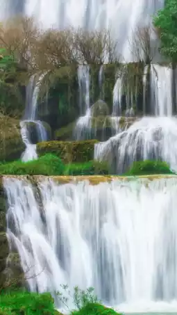 The Waterfall's Magnificence: The water flows powerfully and continuously throughout the year.
