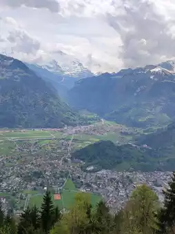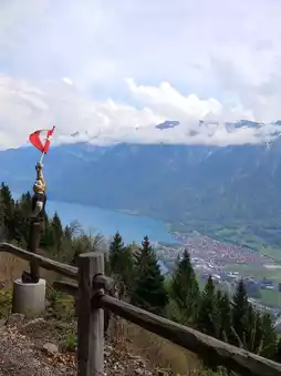 The summit provides 🏞️🏔️panoramic views over Interlaken, nestled between Lake Brienz and Lake Thun, with the iconic trio of peaks—the Eiger, Mönch, and Jungfrau—in the backdrop.