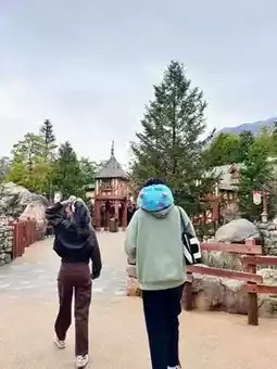 Before entering the park, there was a shopping area where we could buy Disney-themed accessories. We picked out headbands to wear—choosing one was a must to keep the energy up! The background music made us feel like we were stepping into the magical world of Disney.