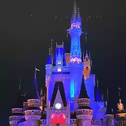 📍Daytime: The blue-and-white castle stands proud against a clear sky, surrounded by cheerful music and joyful visitors. It's a classic photo spot — with churros in one hand and Mickey ears on your head!