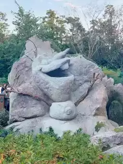Have you been to Tokyo DisneySea's new area, Fantasy Springs? ✨ At the entrance to Fantasy Springs, you're greeted by stone statues of Peter Pan, Rapunzel, and Anna & Elsa. 🤍