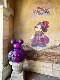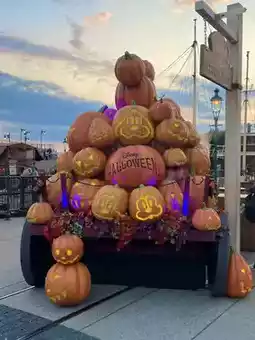 Various areas in the park are decorated for Halloween.