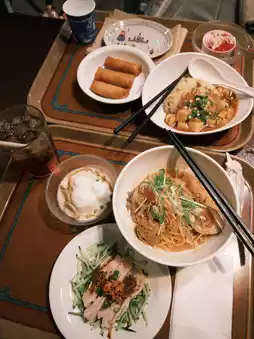 For lunch, we chose Vulcania Restaurant, one of the few Chinese cuisine-themed restaurants in the park. We ordered the Set Menu, which included an appetizer, main course, dessert, and a drink. The taste exceeded our expectations! I even paid extra for a special Fantasy Springs commemorative plate as a keepsake. The total cost was about HKD100 per person, which is reasonable for a theme park restaurant. The interior resembles a volcanic cave, making it a unique and cool spot to escape the heat.