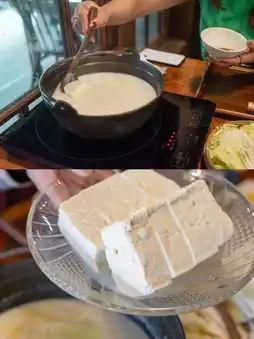 Onsen yudofu was also eaten by travelers passing through the Nagasaki Kaido during the Edo period. When boiled in Ureshino's hot spring water, which has special properties, the tofu melts and becomes fluffy and has a texture like light snow.