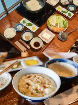 The water for the yudofu, which was transparent, gradually becomes cloudy, almost like soy milk. At the end, they add rice to make porridge, which is thick and delicious, almost like risotto....