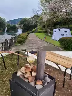 At the Ureshino Outdoor Field located in Todoroki Waterfall Park, you can experience a tent sauna infused with the aroma of Ureshino tea.