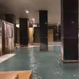 The large public bath "#御影殿" is located on B1 and can only be accessed by stairs from the 1st floor. The overall design of the high tower building "タワー宮" including the bath is by the master architect "#黒川纪章". It's a pity that the building is older than me, so it is so mottled. There is construction going on outside, and it seems that other accommodation areas will be expanded in the future. I went to take a look outside "#水明荘". The rooms there are more upscale, and there is an outdoor drinking fountain in the corridor.