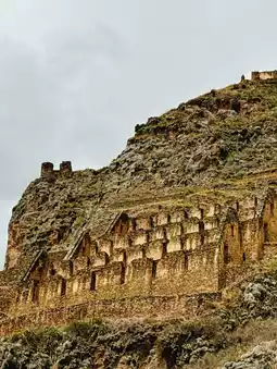 Opposite the ruins, there is a well-preserved Inca granary and a giant stone face of the creator Viracocha on the mountain wall. The Inca people used stones to block the sun and store food with the low temperature on the mountain. Viracocha is the creator god in Inca mythology. He created the earth, the sun, the moon, the stars, and also created humans with stones.