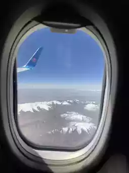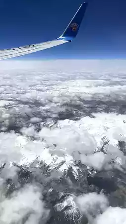 Because the weather was gloomy and nothing could be seen when approaching evening on the way there, I was lucky that on the return trip I feasted my eyes. In the air, I saw a vast expanse of snowy mountains🏔️ appear before me, truly awe-inspiring, and I didn't dare to sleep the whole time for fear of missing out‼️