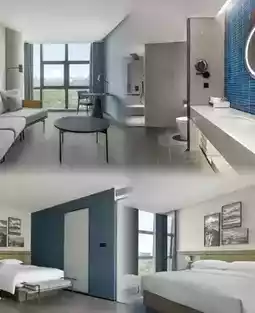 The Zhongjian Four Points by Sheraton Urumqi is located in the Urumqi Olympic Sports Center, which consists of "one stadium (sports stadium)", "four halls (comprehensive gymnasium, public fitness hall, swimming hall, track and field hall)", and "one hotel". This place is not only the venue for various events and concerts in Urumqi but also has professional sports venues. The brand-new hotel is suitable for tourists to "check-in" and is also a great place for local residents to have a staycation without leaving the city.