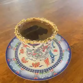 So the process is like the coffee ground is place into a cup and then hot water is added. It is then dipped in the sand u til it boils! It is so fascinating to see.