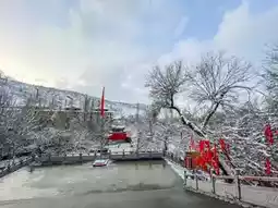 QingquanTemple is a temple that is especially charming in winter. The traditional castle-like architecture covered in snow and the quiet red main hall give you a sense of peace as if time has stopped. The forest surrounding the temple is decorated with pure white snow, and every step you take, you will see a warm winter landscape. The shadows of the Buddha statues cast on the snow remind you of an oriental painting, and the winter fog rising from the spring water adds a sense of mystery.