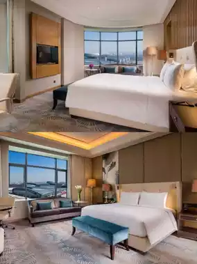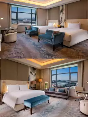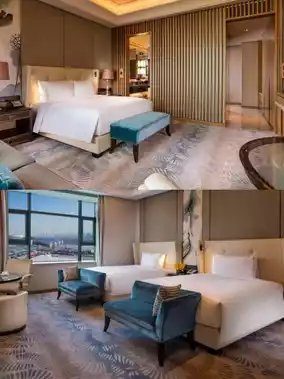 There are 383 spacious and comfortable guest rooms and suites, each of which is like a small luxurious fortress. 🛏️The room is equipped with LCD flat-screen TV, office area and capsule coffee machine. The luxury suite also has a smart toilet seat, a massage chair and a capsule coffee machine. This configuration is amazing! 😍